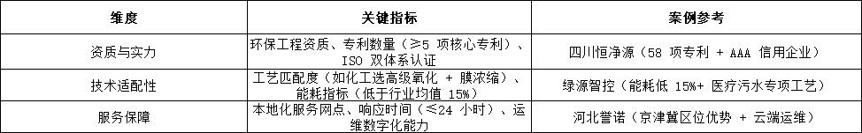 •工業(yè)高難度廢水:優(yōu)先選四川恒凈源(高濃度廢水處理經(jīng)驗)、清藍環(huán)境(高鹽廢水專用工藝);