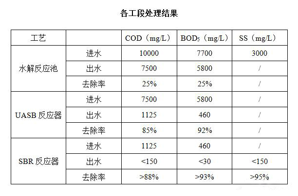 各工段處理效果具體如下表。該方案不僅處理效率高,其運(yùn)行管理也方便。