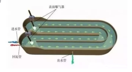 氧化溝具有推流特性,使得溶解氧濃度在沿池長方向形成濃度梯度,形成好氧、缺氧和厭氧條件。通過對系統(tǒng)合理的設(shè)計與控制,可以取得較好的脫氮除磷效果。